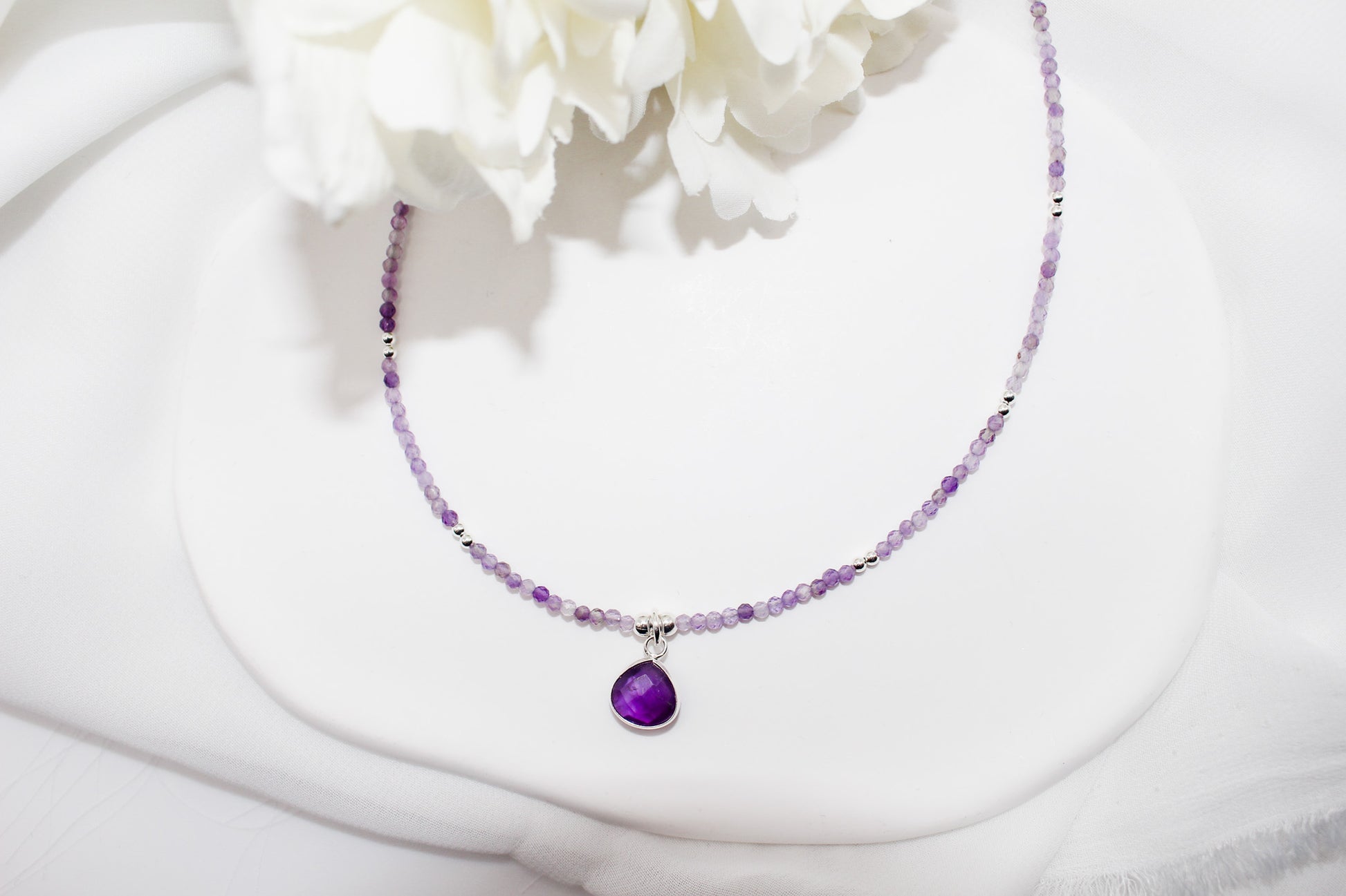 Expertly crafted with genuine amethyst gemstones, this Amethyst Necklace is the perfect addition to your everyday look. The rich purple hue of the gemstones adds a touch of elegance, making it a versatile piece for any occasion. Enjoy the stunning beauty and timeless style of this necklace.