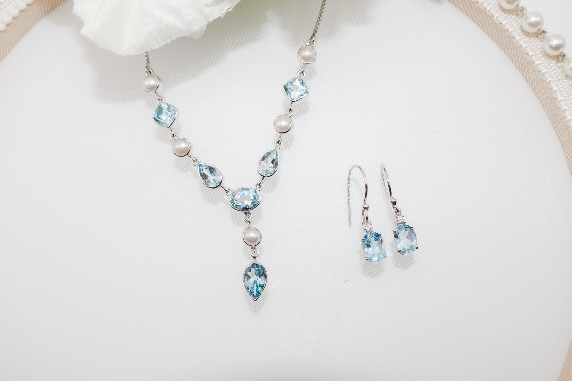 Blue Topaz and Pearl Jewelry Set
