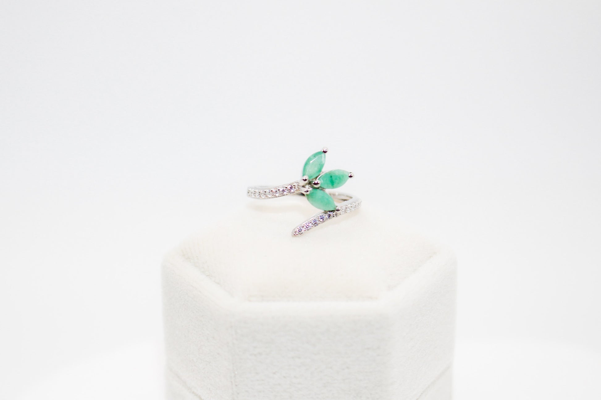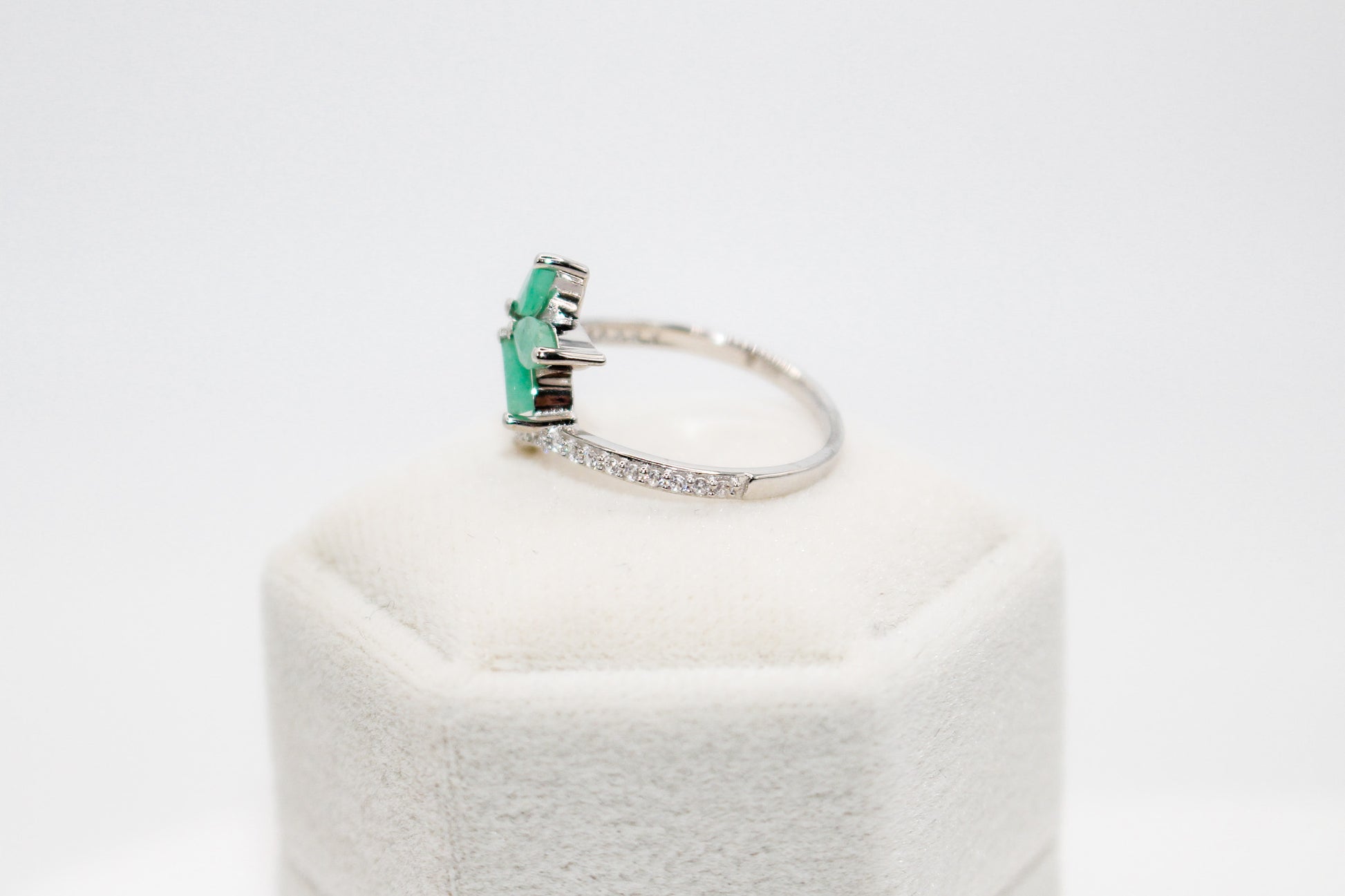 Striking emerald ring featuring marquis-cut natural stones set in silver. The refined design showcases the rich green brilliance of genuine emeralds in an elegant, timeless style perfect for any occasion.
