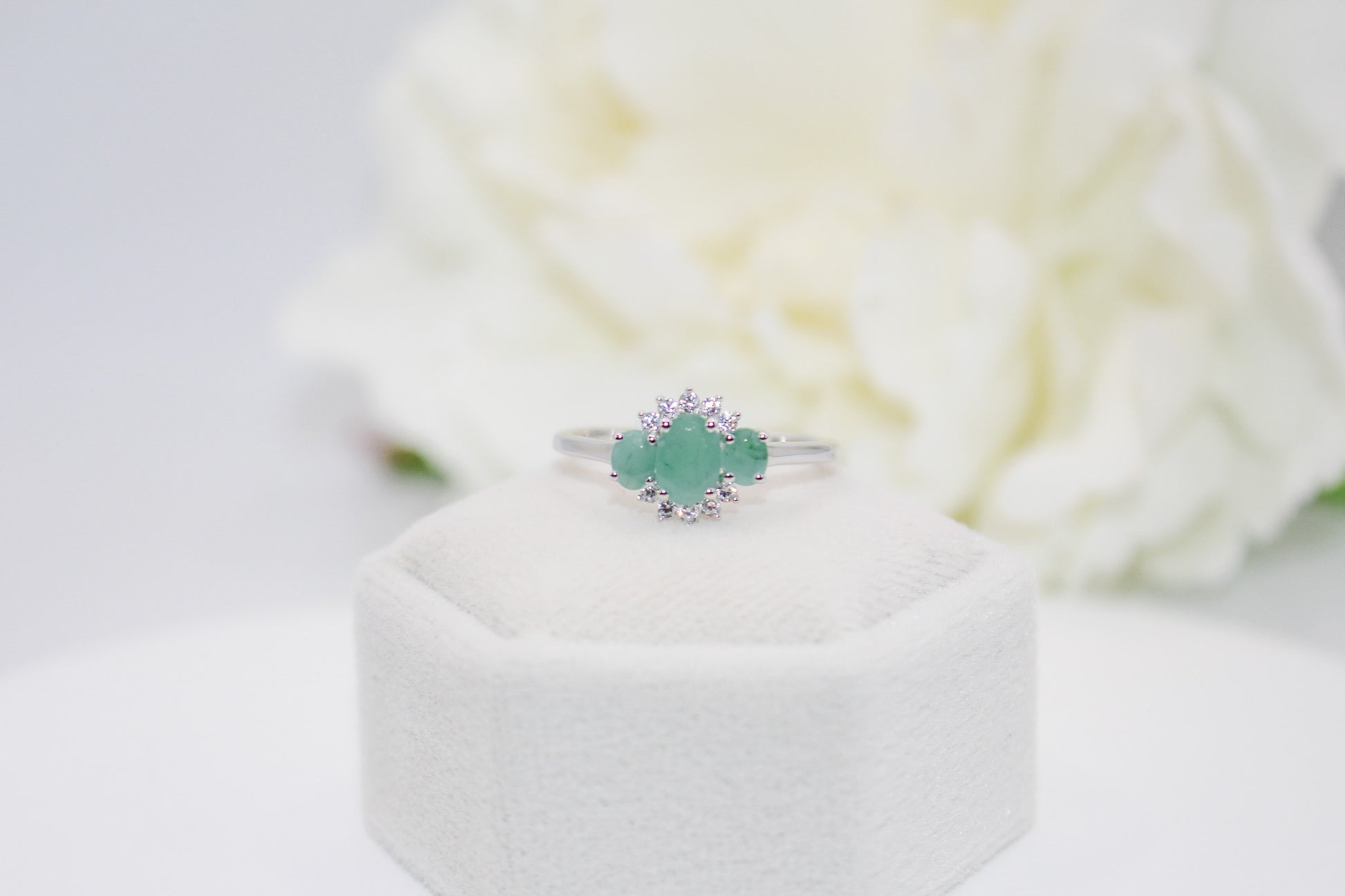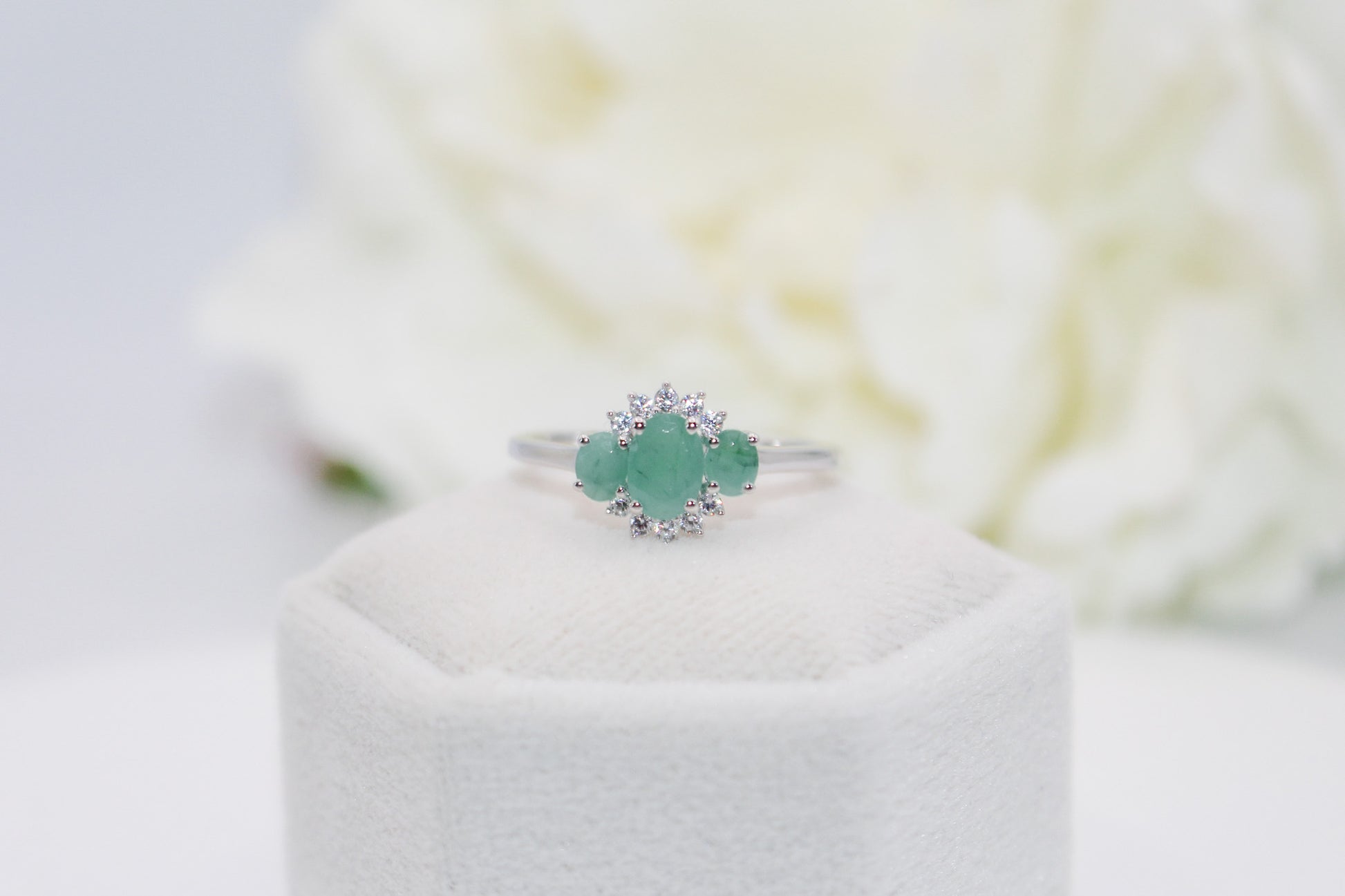 This Emerald Three Stone Ring showcases a stunning, natural emerald that exudes a captivating green hue. With its timeless three stone design, this ring adds a touch of elegance and sophistication to any outfit. Allow this beautiful emerald to elevate your style and make a statement.