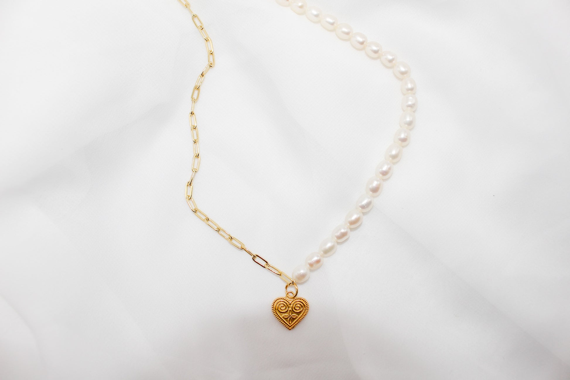 Gold Heart Pearl Necklace