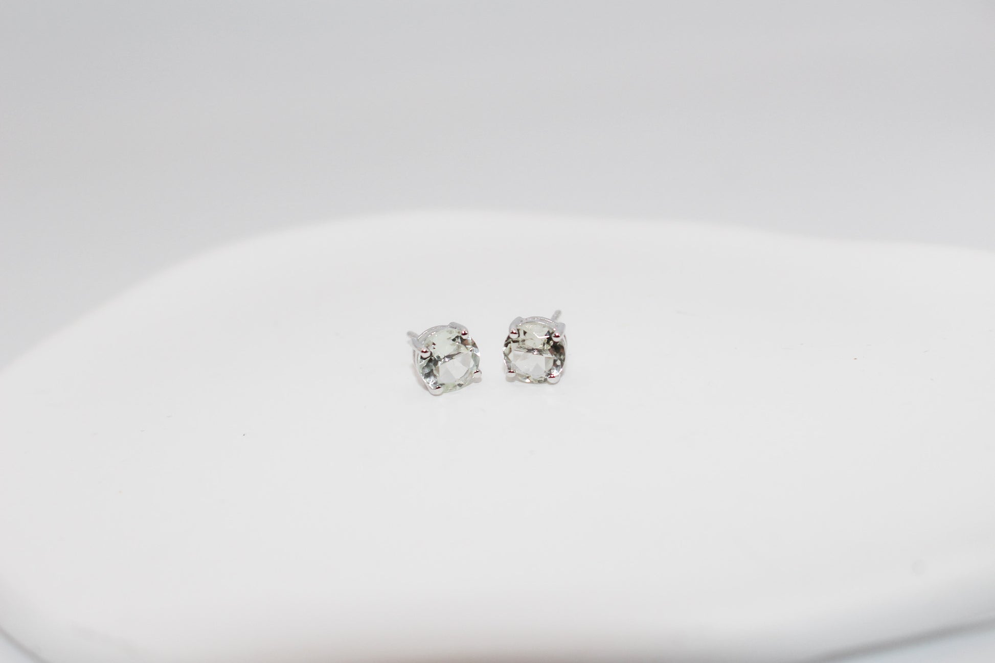Elegant green amethyst earrings featuring natural round-cut stones that catch light beautifully. Their timeless design makes them ideal for daily wear, seamlessly transitioning from casual to professional settings. A versatile addition to any jewelry collection.