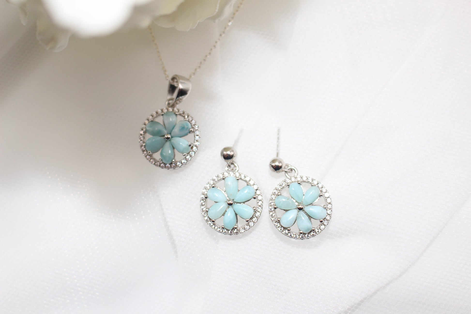 Larimar Flower Jewelry Set