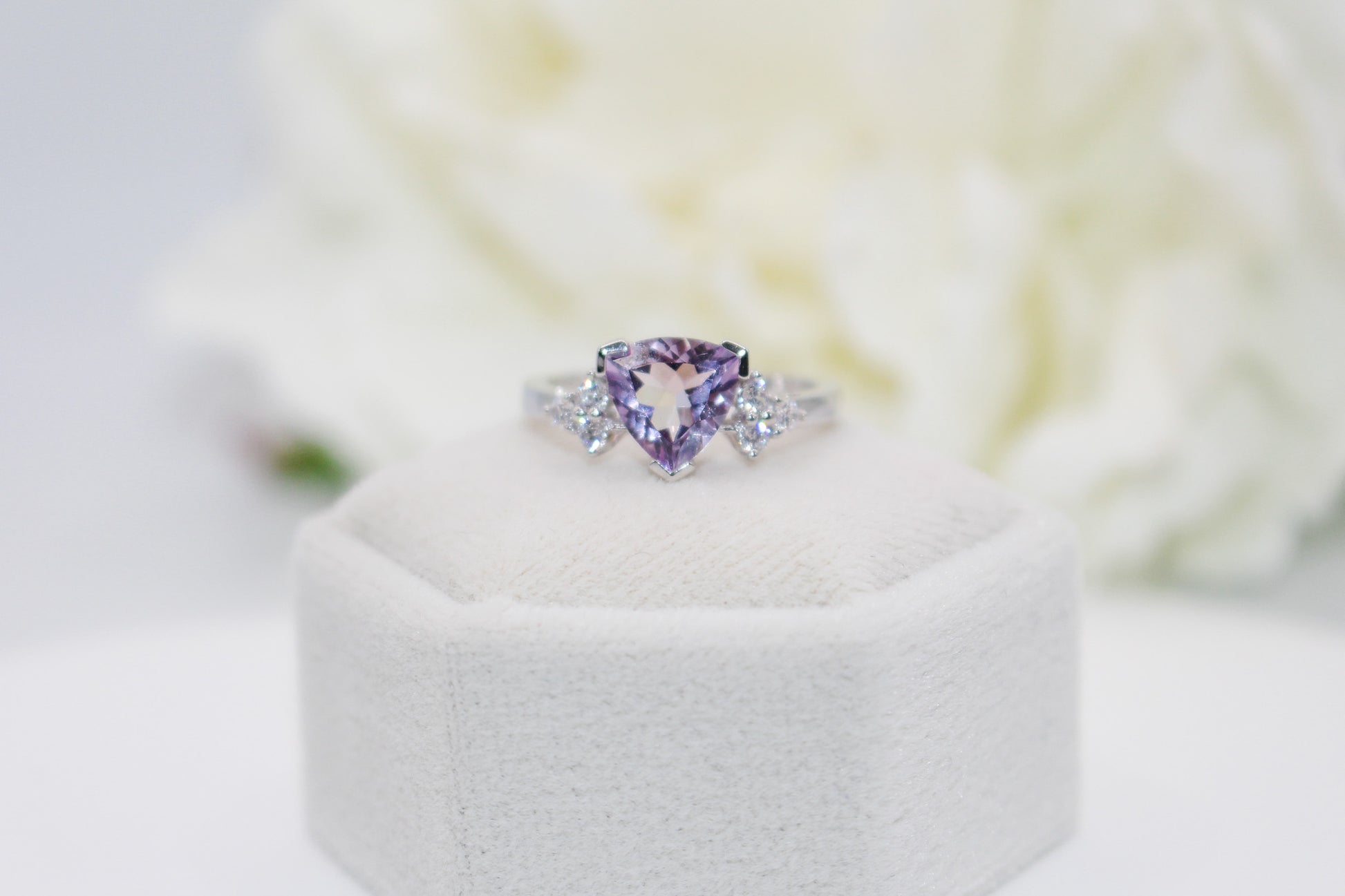 Pink Amethyst Trillion Cut Ring