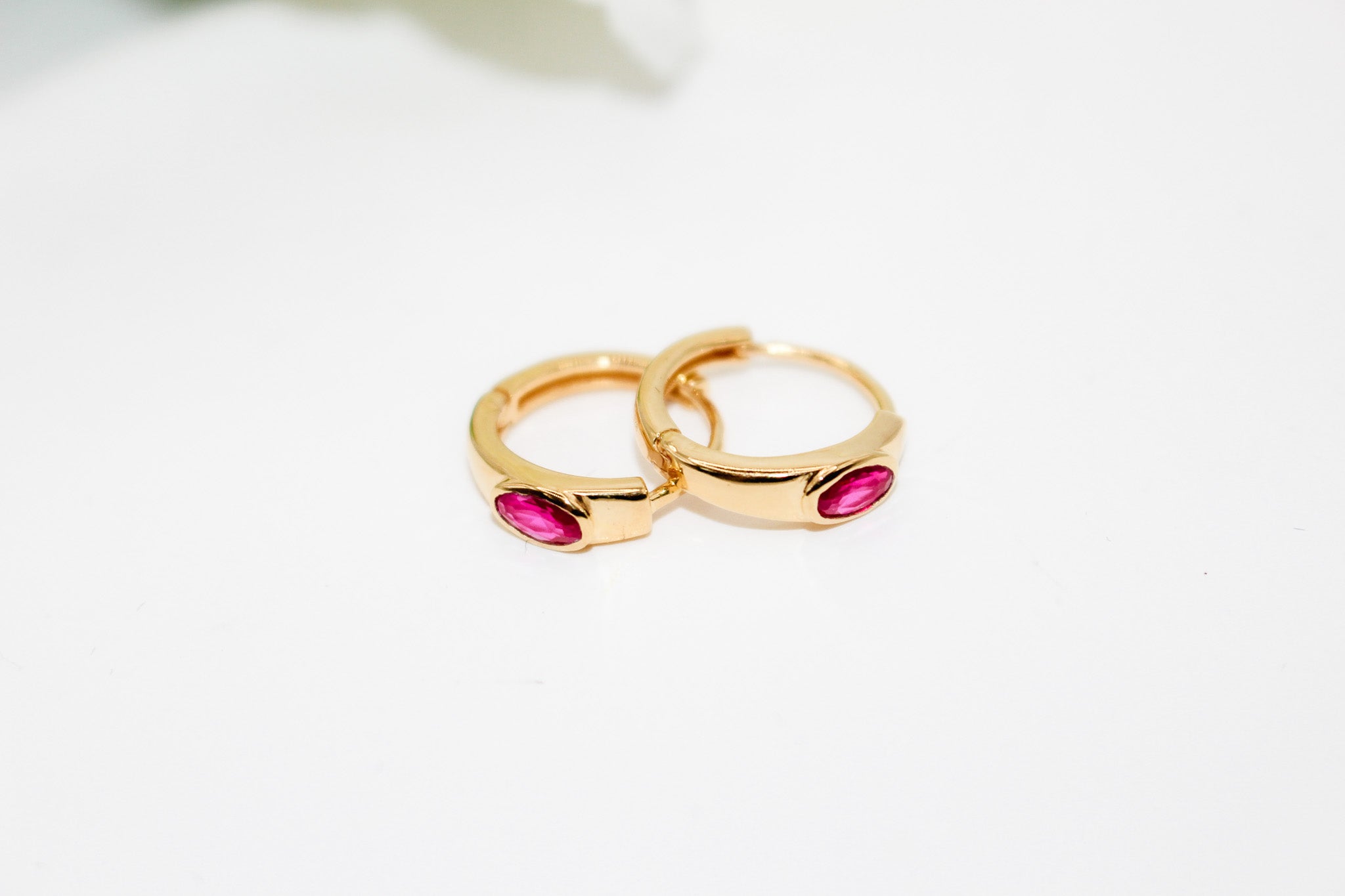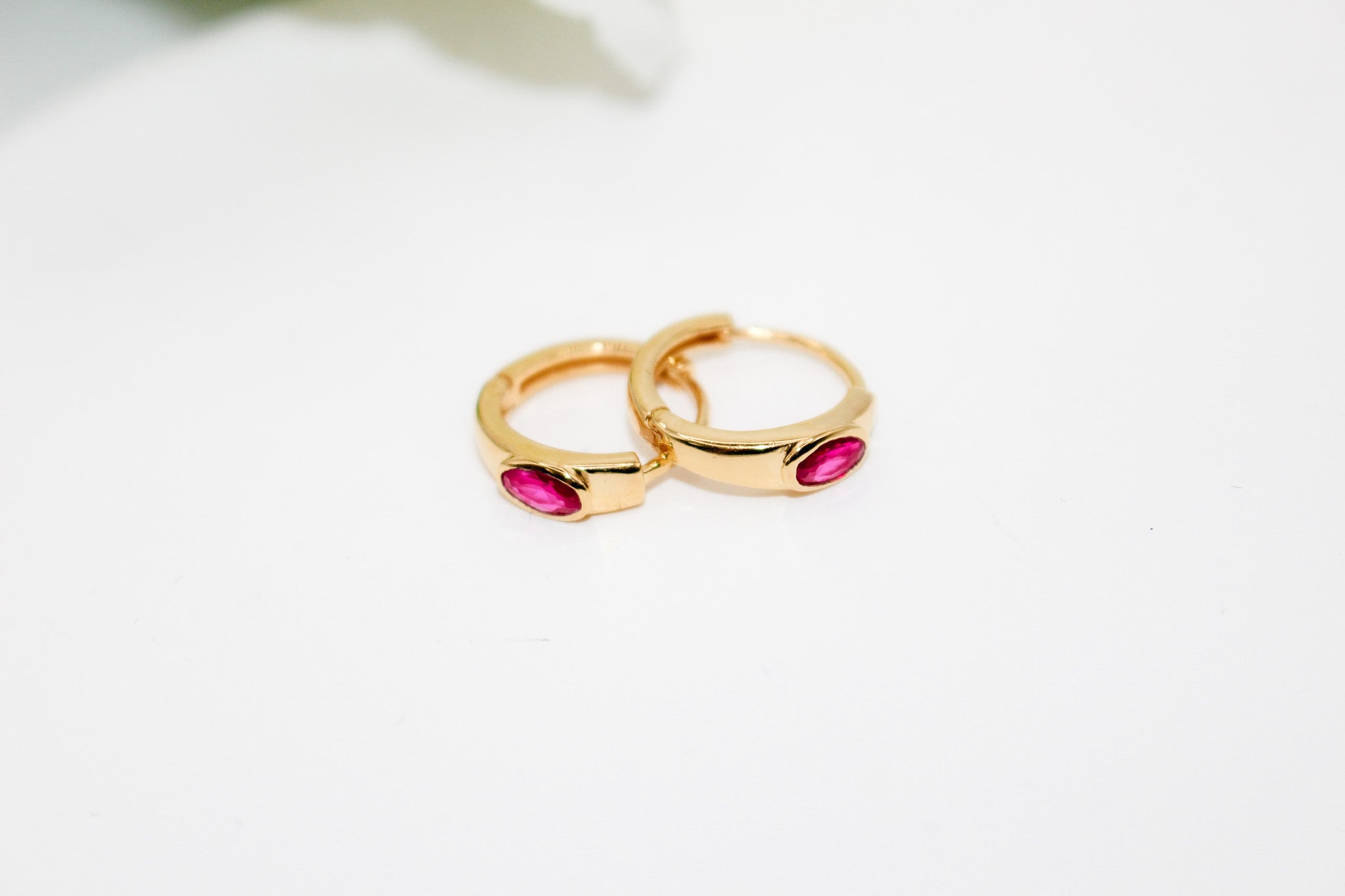 Ruby huggy earrings designed for everyday sophistication. This timeless pieces feature vibrant rubies set in silver plating with a warm...