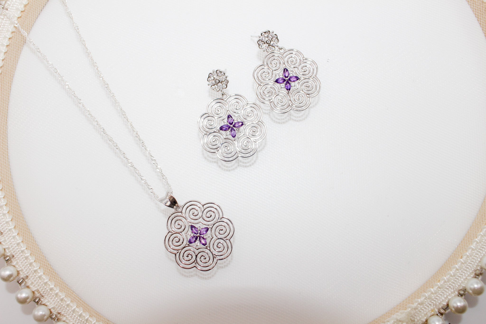 Silver Amethyst Hmong Jewelry Set