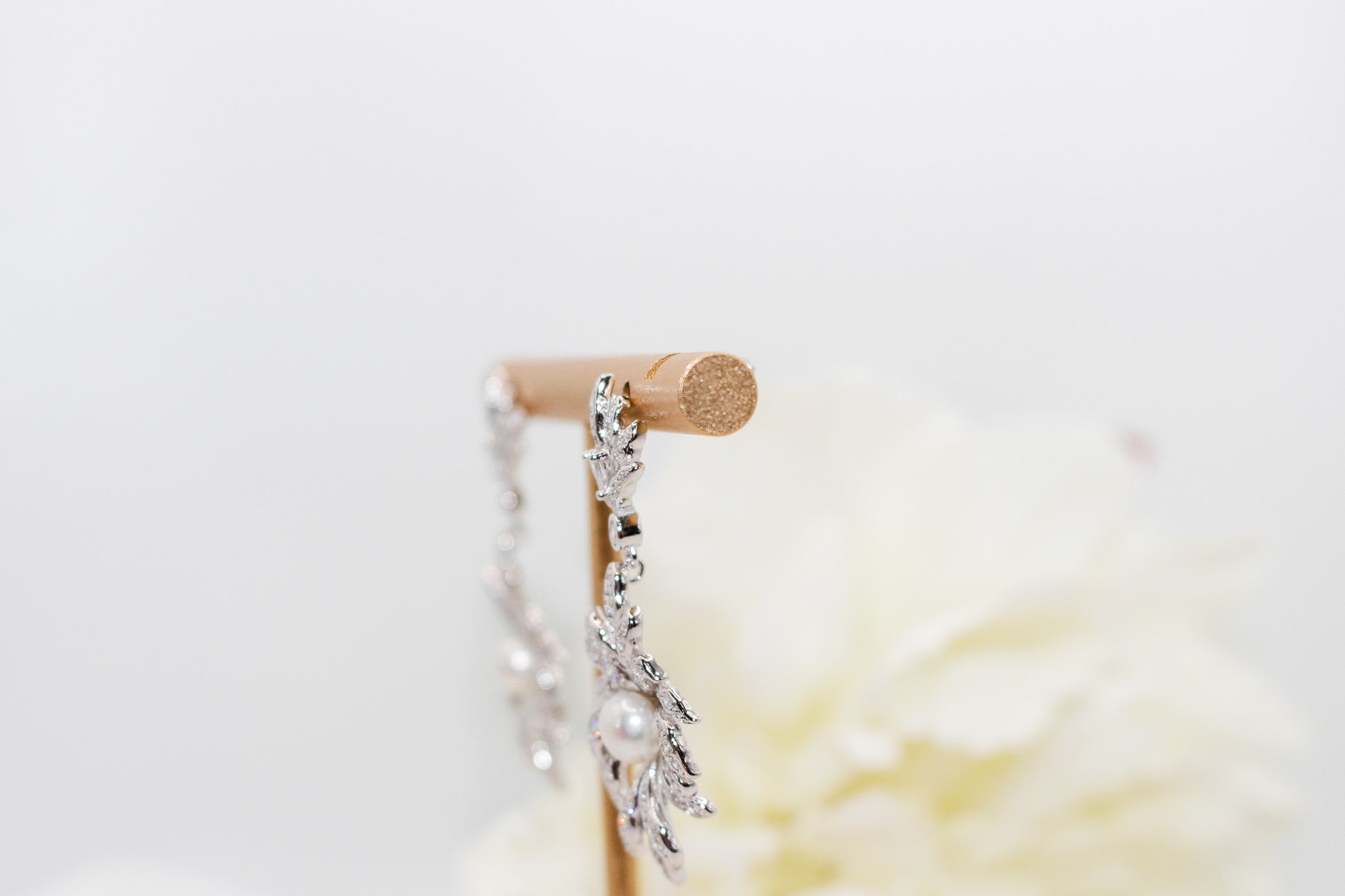 Silver Leaf Pearl Drop Earrings